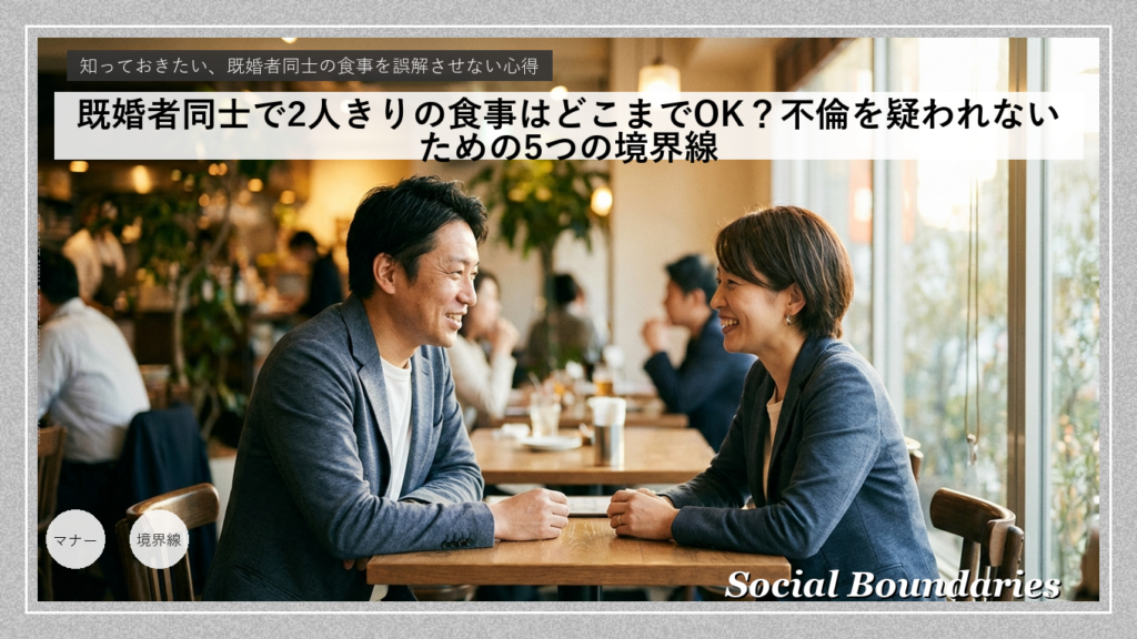「既婚者同士だけど、あの人と2人きりで食事がしたい」そう思うこと、ありますよね? でも、ふとした瞬間に「これって世間的にはどう見えるんだろう?」と不安がよぎる。そんな悩みを持つ方は、私以外にもいるんじゃないでしょうか? 今回は既婚者同士の食... -
