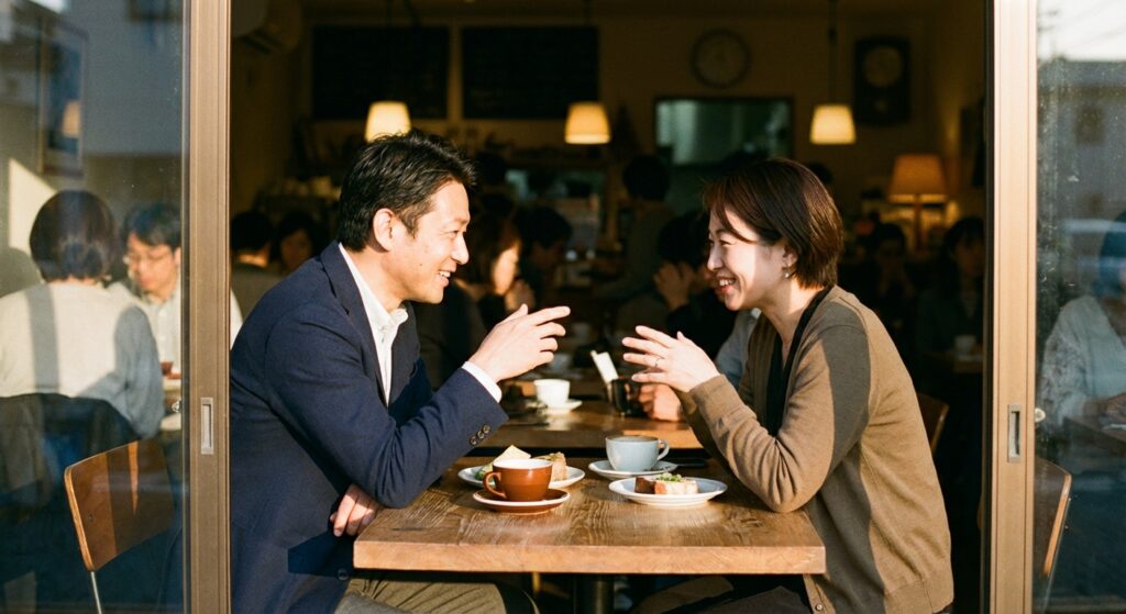 仕事の相談、資格試験の情報交換、あるいは共通の趣味であるゴルフや写真の話。こうした明確なトピックがあれば、食事はそのための「手段」になります。